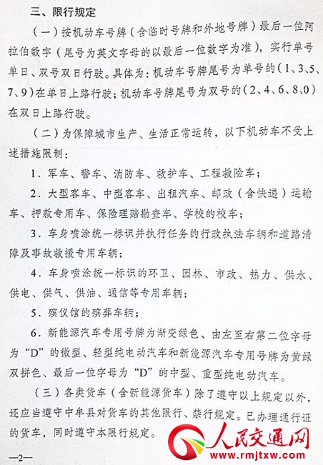 限行規(guī)定 三