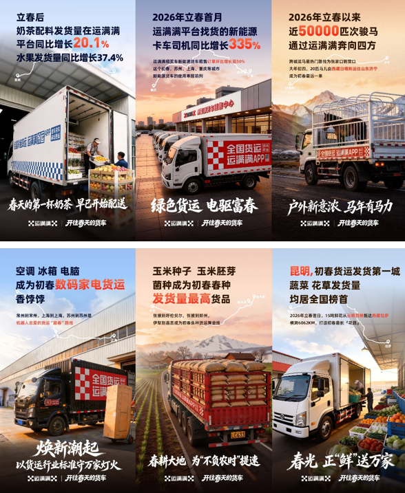 重點(diǎn)城市依舊領(lǐng)跑貨運(yùn)熱潮。運(yùn)滿滿平臺(tái)數(shù)據(jù)顯示,2026年立春后首月,全國(guó)核心發(fā)貨城市依次為昆明、蘇州、上海、成都、哈爾濱,收貨前五城分別為上海、臨沂、重慶、鄭州、濰坊。貨運(yùn)網(wǎng)絡(luò)南北聯(lián)動(dòng)、東西互通,讓春日好物快速跨區(qū)域流通。