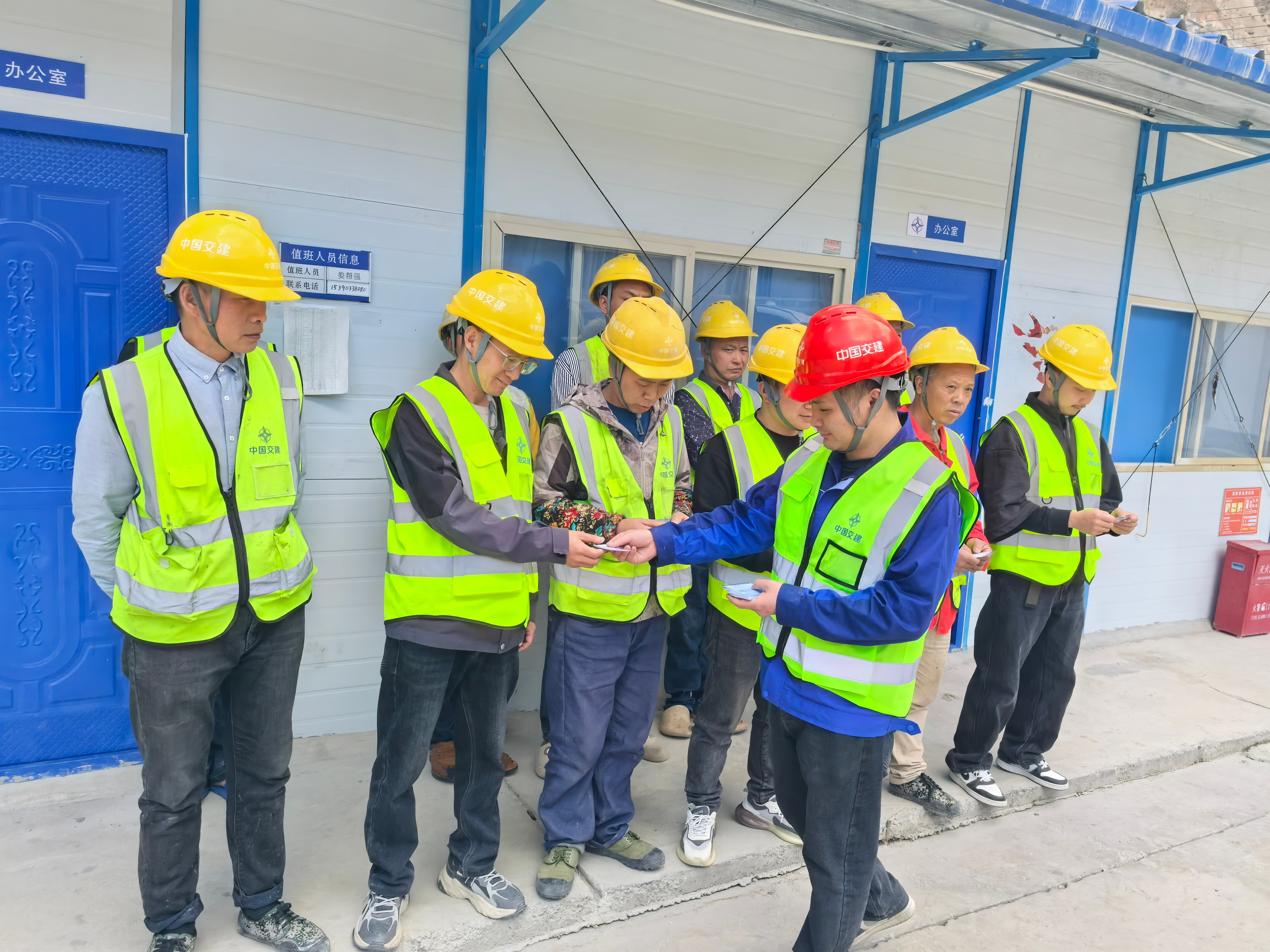 觀看結束后,為扎實維護一線工人合法權益,筑牢項目和諧穩(wěn)定根基,將全民國家安全教育日“統(tǒng)籌發(fā)展和安全”的要求落到實處,項目勞資專員前往工人駐地,開展維權知識宣傳及維權聯(lián)系卡發(fā)放工作。發(fā)放過程中,管理員耐心向工人們講解農(nóng)民工工資支付相關法律法規(guī)、維權流程、投訴舉報渠道等內容,確保每位工人都能掌握自身合法權益的維護方式。