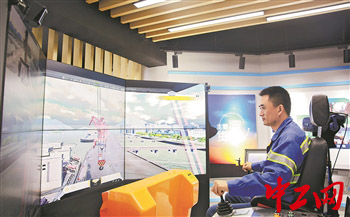 現(xiàn)在,在位于張家港港務(wù)集團港埠分公司的“黃強勞模創(chuàng)新工作室”,坐在門機操作模擬器上,戴上VR眼鏡,就仿佛置身碼頭,手握操作桿,即可進行“吊裝”操作。極大節(jié)省了門機實操練習的成本。