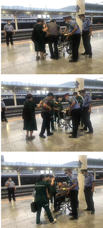 2023年7月14日,1453次列車由南昌局南昌客運段贛州車隊贛京錫六組列車長胡勇?lián)敵藙,列車運行聊城至菏澤區(qū)間,18時20分4車37座旅客于付忠家屬找到工作人員,聲稱其老公左側(cè)腰痛,面色發(fā)白,大汗不止。經(jīng)詢問得知有腎結(jié)石病史目前無法站立。列車長胡勇于18時23分立即趕赴現(xiàn)場,開啟音視頻記錄儀,并廣播找醫(yī)生,未有醫(yī)生到達現(xiàn)場,經(jīng)車長胡勇聯(lián)系菏澤站撥打120急救電話,列車到達菏澤站時,車長胡勇與車站工作人員和120醫(yī)務人員把疾病旅客安全轉(zhuǎn)送院,家屬表示感謝。