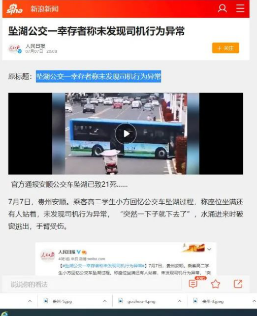 (2)駕駛員沒有受到其他人攻擊,也沒有人發(fā)現(xiàn)巴士駕駛員行為異常,獲救車內(nèi)乘客提供的信息和多家媒體采訪報(bào)道的新聞基本一致;