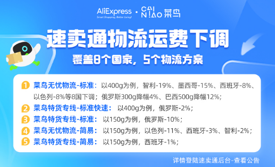 據(jù)悉,菜鳥聯(lián)合速賣通連續(xù)兩個季度下調(diào)了物流費(fèi)用。