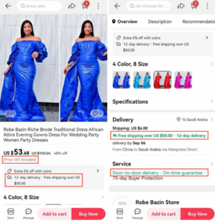更重要的是,據(jù)菜鳥國際快遞方面介紹:升級后的履約時效可從原來的30天縮短至12天,物流成本在當(dāng)前沙特?zé)o憂標準報價基礎(chǔ)上降低30%。此外,速賣通平臺內(nèi)全鏈路打標“X日達、晚必賠”、“含VAT”、“滿50包郵”標識,幫助商家提升購買轉(zhuǎn)化率。
