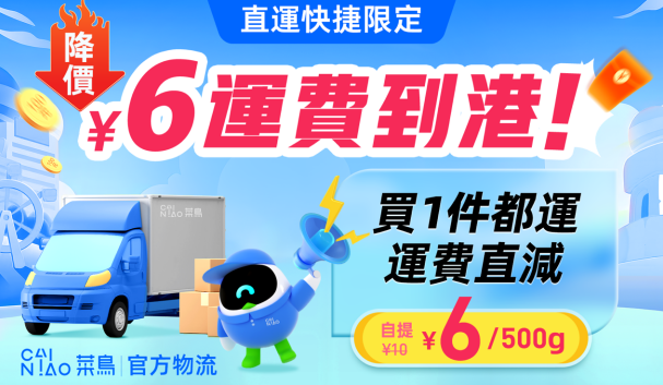 “購物上淘寶,物流選菜鳥。”日前,菜鳥下調(diào)淘寶香港站的直郵門檻,重磅推出6元運費到港服務。
