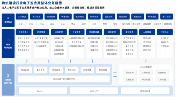 不僅如此,法大大還可與物流企業(yè)的各種數(shù)字化業(yè)務(wù)系統(tǒng)、IT系統(tǒng)等無(wú)縫集成,打破信息孤島,實(shí)現(xiàn)具體業(yè)務(wù)場(chǎng)景與電子簽的全鏈路數(shù)字化閉環(huán),以更好地對(duì)各項(xiàng)數(shù)據(jù)進(jìn)行一體化分析,優(yōu)化企業(yè)的經(jīng)營(yíng)決策。